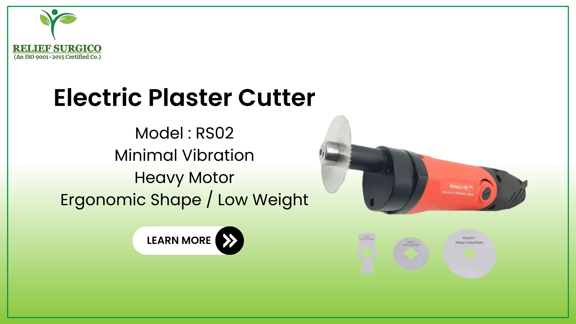 Relief Surgico was established in the year 2020 and India's reputed manufacturer & suppliers of Plaster Cutter Equipments, Orthopedic Equipments, Laboratory & Scientific Products and Hospital Supplies. Our top selling products are Plaster Cutter Equipment.